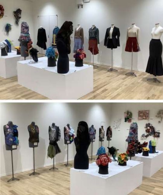 現在、本館1階の展示室で、ファッションアート専攻2・3年生の作品展覧会を開催しています。作品はすべて力作ぞろいで、生徒たちの素晴らしい感性を称えたいと思います。