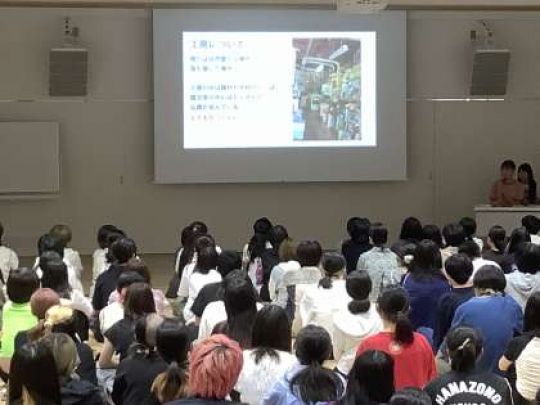 そして今日のLHRの時間を利用して、インターンシップに参加した生徒たちがその経験を報告する「キャリアアップ報告会」を開催し、1,2年生全員に報告しました。