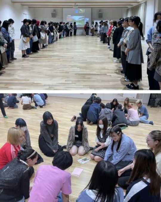 本校ボランティア生徒の案内で美工作品展を見学していただき、その後は本校に移動して、本校生徒会の生徒たちを中心に企画してくれた交流会を行いました。
