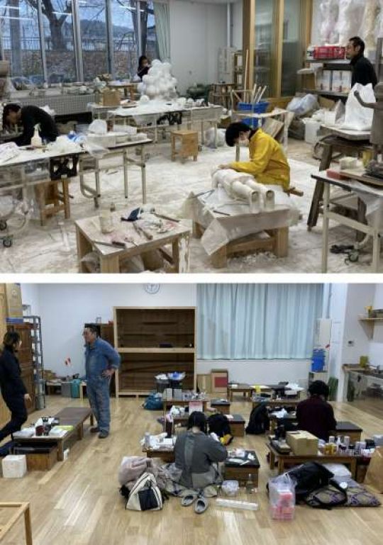 アートフロンティアコース3年生の実習 lll の授業では、1月31日(金)から開催するアートフロンティアコース後期作品展の搬入に向け、作品完成を目指して最後の追い込みをしていました。