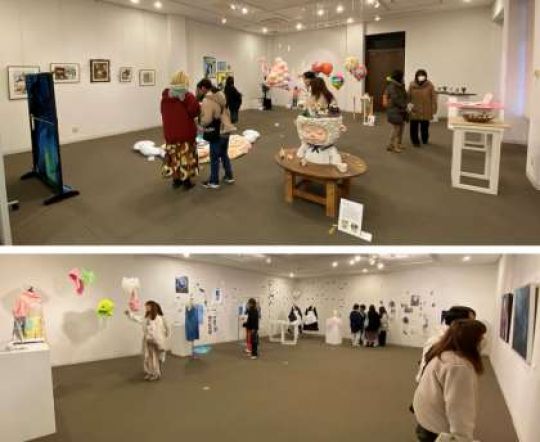 アートフロンティアコース後期作品展の会期は3日間しかありませんでしたが、多くの来場者がありました。 寒い中、足を運んでいただいた保護者の方をはじめ、市民の方、教育関係者の方など、本校生徒の作品を鑑賞いただきましたこと、本当に感謝申し上げます。ありがとうございました。 (3会場の様子)