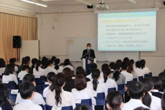 午後からは学校説明会全体会を実施いたしました。 全体会では,本校のカリキュラムやICTを活用した学びや,グローバル教育プログラムなどの本校の教育の特色を説明させていただきました。 また,生徒会長からの挨拶や生徒会による学校紹介動画,卒業生からの越境メッセージなどもありました。 11月20日(土)には,入試相談会がございますので是非お越しください。多く…