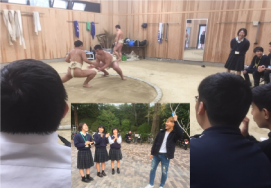両校の生徒が一つのグループを作り、6班に分かれてお好み焼パーティーを開きました。当初は、緊張感が漂っていましたが、自己紹介や学校の様子を交流している間にすぐに打ち解けていました。食べ始めるころには以前からの友達のように会話が弾んでいました。お好み焼きパーティー終了後、本校を代表する剣道部と相撲部の見学に行きましたが、KIUAの生徒の皆さんはテンションが上がっている様子でした。今回は、初めての取組みでしたが大成功でした。次回は来年2月中旬に日吉ケ丘高校からKIUAにお邪魔する予定になっています。これを機に今後ますます交流が深まることを期待しています。