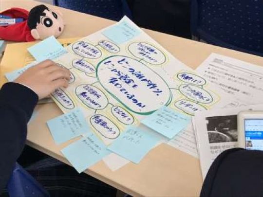 前回作った質問に対し,どんなことが分かれば答えに近づけるかを考え,ブレーンストーミングの手法と併用して小さな質問をたくさん作りました。終わりには,自分たちの立てた問いに対する答えを発表しました。