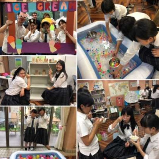 As a final activity, there was Scavenger Hunt in which students had a task to find specified items scattered around the school. They walked around with yo-yos, bouncy-balls, prizes they got by Shooting, and smiles on their faces. This might be an eve of Gion Festival for them.