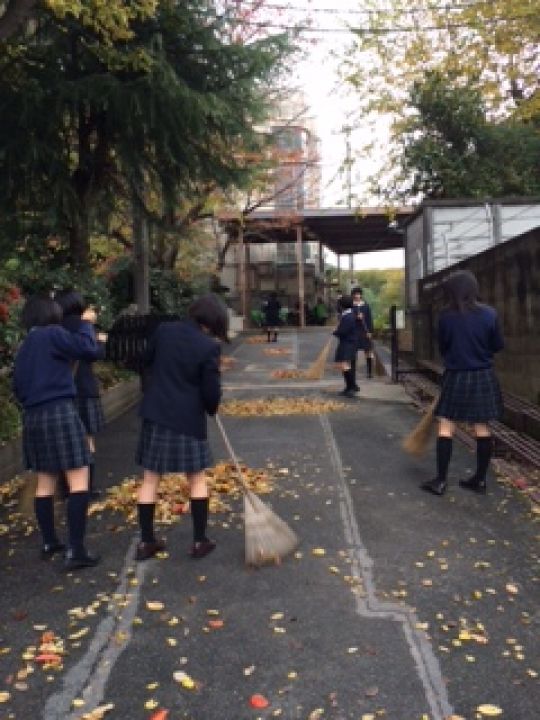 紅葉の季節ともなれば色鮮やかになる月輪学舎。そのような中で、女子バレーボール部及びソフトテニス部が中心になり早朝より清掃活動を行っております。