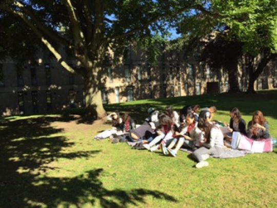 本能館のお隣、本能特別養護老人ホームにて邦楽部がコンサートを行い、全国大会で演奏する『迦樓羅』などを披露しました。みなさん演奏を熱心にお聴きくださったうえ、心に染みた、すばらしかった、と温かいお言葉をたくさん下さいました。昔お箏・三味線を習っていたという方もいらして、短い時間でしたけれども大先輩との交流は邦楽を継ぐ、という意識を改めて奮い起こすきっかけと…