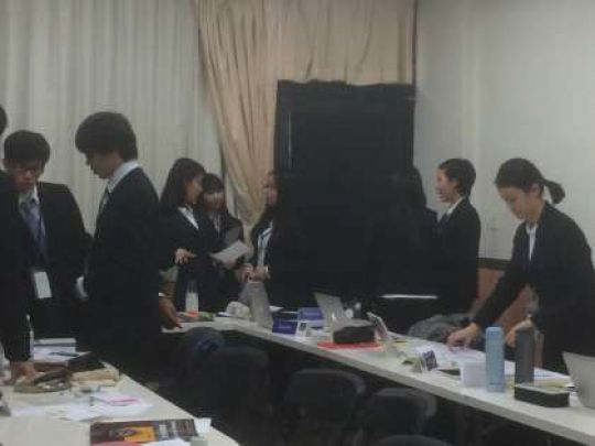 昼からは、ついに、待ちに待った模擬国連が開始されました。今回の模擬国連では、3つの委員会が設けられています。各人が、各国の代表者となり、模擬国連の手順やルールに従って意見を交わし、まだ見ぬ委員会の直面している問題に関する解決策を模索します。今回の会議は3日間続きます。全体討議や、その最中のメモによるやりとり、そして、公式(もしくは非公式)な会談が行われる中で、最終的な自国の立場を表明しなければなりません。何が起こるのかと考えるとワクワクします。