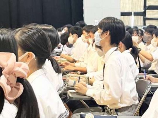 7月25日,全員学習の午後に24期生1年生の「非行防止教室」が講堂で行われました。