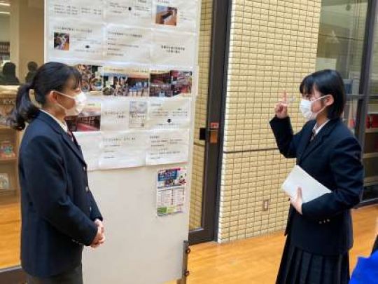前期選抜による休業明けの今日2月20日(月)の昼休みに、この夏から冬にかけて行われたグローバルリーダー育成研修に参加した生徒が、その成果をアトリウムにてポスターセッション形式で発表・交流しました。
