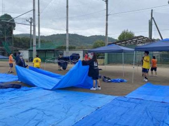 朝8時ごろから、生徒会執行部を中心に、野球部、陸上競技部の部員がグラウンドの準備をしてくれました。