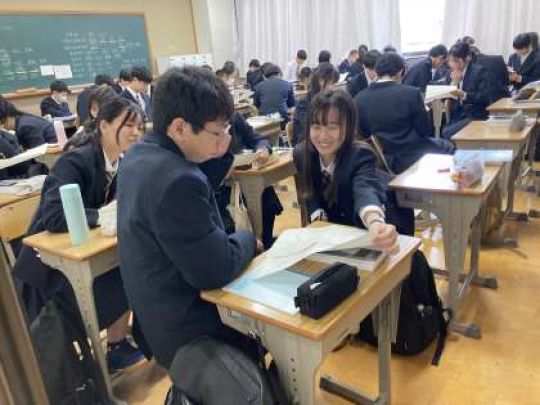 数学では、教材ごとの特徴や難易度を確認しつつ、教員の指示を受けずとも、自分で必要な問題を自分自身で考え、能動的に取り組む方針を共有しました。その後、春課題テストの解きなおしをもとに仲間と問題の解き方を共有したり、解けなかった問題を教え合ったりしてクラスで高め合う姿勢を学びました。