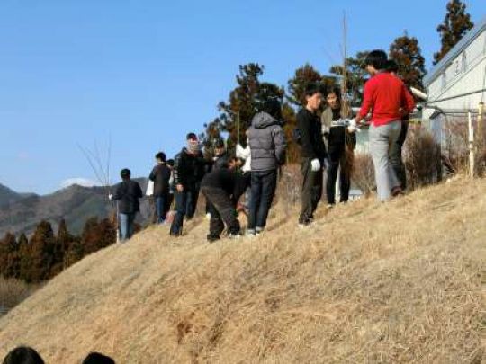 写真中)桜が咲きますように。苗木を植えています。