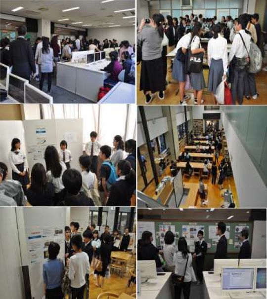 全体会後には、自由に校舎内を巡っていただきましたが、校内の各施設では生徒スタッフが学校生活の様子、探究活動などを紹介しており、多くの方に見たり聞いたりしていただきました。