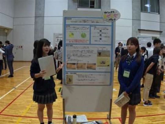 本校の白い無辺のキャンパス内のL-pod教室にて、3年生の総合的な探究の時間「協創3」や学校設定教科「ルミノベーション」で取り組んできた探究的な学びや活動に関する展示を行いました。 3年生の展示の様子となっています。