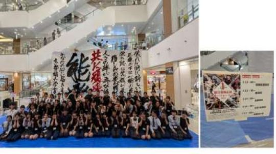 本日、イオンモールKYOTOセンターコートにて、本校防災ボランティアのメンバーと書道部がコラボし、能登半島復興応援イベントを開催いたしました。準備・受付・司会・控室誘導等の運営面を防災ボランティアが支え、復興応援への熱い思いを書道部がパフォーマンスで表現。桂高校・洛西高校・日吉ケ丘高校・京都橘大学の皆さんと協力し、有意義なイベントを作り上げることができました。