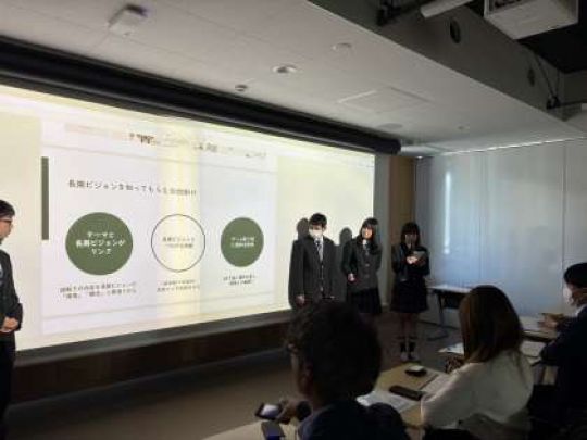 具体的には、2025年より新たに策定される京都市の長期ビジョンを題材に、「京都市が目指す姿はどのようなものなのか」、「自分たちが思い描く未来の京都の理想像とはどのようなものか」といった大きな視点で考察した後、「どうすれば市民の方に長期ビジョンを意識し、理解してもらえるのか」について、本校の未来協創会議のメンバーが、都市経営戦略室の方々に提案をさせていただきました。