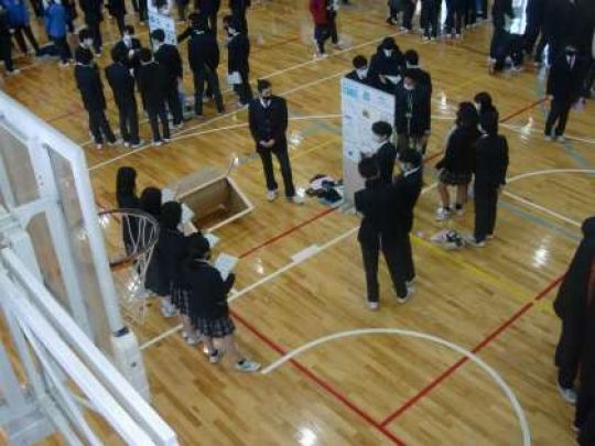 7月31日(土)~8月2日(月)の3日間,近畿大学生物理工学部(和歌山県紀の川市)で開催される「第45回全国高等学校総合文化祭」自然科学部門出場生徒に対して,本校校長室より激励を受け,力強い決意表明を行いました。 ■日程 7月20日(火)放課後 ■場所 応接室 ■対象 サイエンスクラブ ・3年 福田康貴,小関啓史 物理部門京都府代表 「DSSCデバイス作製におけるPEG添加…