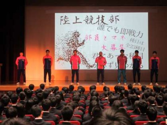 4/11(木),新入生対象に部活動紹介が行われました。文化系,工学系,体育系の全22団体が,それぞれ趣向を凝らしたプレゼンが披露され,部活動を通したコミュニケーション能力の向上,チーム一丸となってやり遂げる達成感,継続して努力する大切さを感じ取れたものとなりました。