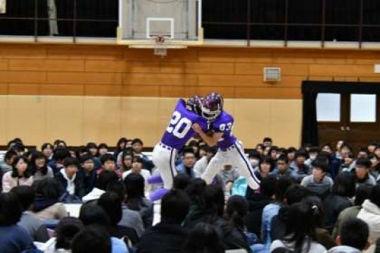5月15日(火)昼休み、校内第一体育館においてアメリカンフットボール部チアBUNNIESが演技披露を行いました。BUNNIESは本日の演技で5月27日(日)開催「全国高等学校ダンスドリル選手権大会 関西大会」にエントリーしています。多くの観覧をいただいたことを支えとし、本番に向けて最後の調整に力を尽くします。