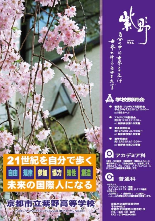 今月10月28日(土)に、普通科説明会を開催いたします。 主題:紫野高等学校 普通科学校説明会 日時:10月28日(土) 9:30受付 10:00開始 場所:本校 第1体育館および教室 備考:当日見学可能なクラブ活動は次の通りです。 ・バドミントン部 12:30~16:00(第1体育館) ・バレーボール部 12:30~16:00(第1体育館) ・体操部 …