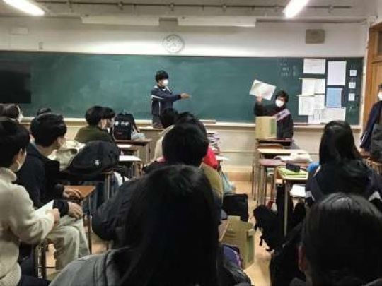 選択の日本語クラスで、5グループに分かれて日本の文化紹介のプレゼンテーションを行いました。紫野高校ALTの先生方に協力してもらいながら、出発前に練習したものです。 「日本の遊び」「スタジオジブリ」「和食」「プリクラ」「書道」について紹介しました。クイズや質問を混ぜたり、実際に体験してもらったりと工夫をしたおかげで、とても盛り上がりました。日本に帰っても、自…