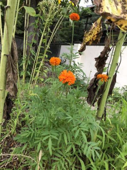 ※新型コロナウイルス感染症対策として学校が4月から休校になりましたが、再開して登校してきた時に、何か励みになればいいなと思い、小グラウンドに花の種をまきました。残念ながら6月からの登校再開には間に合いませんでしたが、ひまわりやマリーゴールドが小グラウンド入口にきれいに咲いています。学校再開後のみんなを応援しているようです。