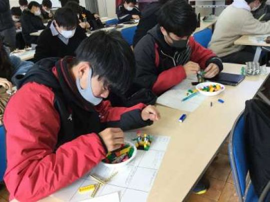 その後,生徒たちは,「2021年の理想の私」をレゴブロックで表現します。それに対してある大きな出来事(例えば新型コロナウィルスの拡大により5年間学校立入禁止)が起きたときに,その理想の私はどのように行動するかを考えていきます。