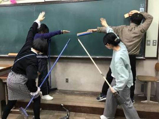 掃除を中心とした彼らの活動は,学校生活の様々な場面で機会を捉えて行われています。黒板をきれいに消す,掃除当番でない日も積極的に掃除に加わる,教員のサポートとしてi-Pad等の重い荷物を運ぶ,プリントの返却等,「皆のために『いいこと』を素直にするのが恥ずかしいから,『偽善』と言って活動してます!」ということでした。