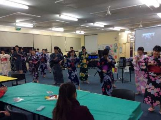 パーティーは、まず紫野高校生全員のダンスパフォーマンスから始まり、その後オーストラリアの生徒と一緒になってブッシュダンス(マイムマイムのような集団のダンス)を踊りました。