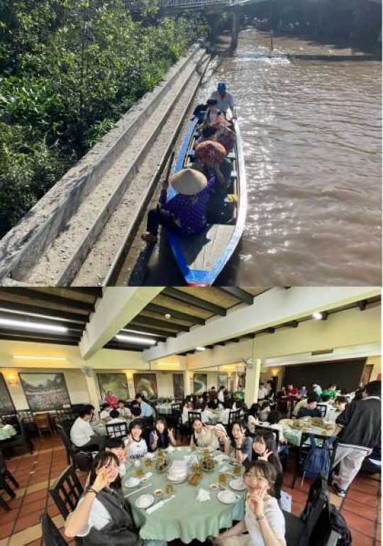 4名ずつ、船頭さんの乗る手漕ぎボートに乗船し、ジャングルの中を15分ほど巡りました。いつでも転覆しそうなくらい水面ギリギリまで沈んだ小舟は、ハラハラしましたがそれもまた一興でした。