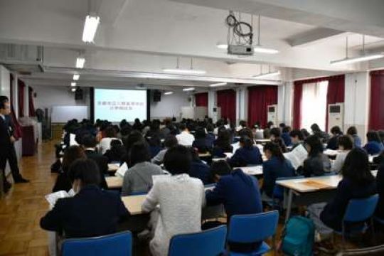 初めに全体会として校長から教育理念の説明、各部長から入試の概要、進路指導について、さらに学校紹介ビデオの上映を行いました。その後希望者には個別相談を行い、ブース10ヶ所を用いて約50組の中学生・保護者に向けて詳しい説明を行いました。