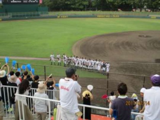 7月14日 わかさスタジアムで2回戦を行い、亀岡高校に5対2で勝利しました。 吹奏楽部、アメリカンフットボール部チア、たくさんの保護者やOBの声援を受けて、選手たちは溌剌とプレーしていました。 次は17日に太陽が丘球場で、兔道高校と対戦です。応援よろしくお願いします。