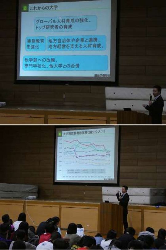 9月11日(月)の7限目LHRに、駿台予備学校西日本事業部より斎藤 誠一様をお招きして、1年生進路講演会を行いました。講演では、大学での学びについて、今から実践していくべきことについて、などをお話しいただきました。生徒たちは集中して講演を聞いており、2年後の大学受験に向けて進路を具体的に考える良い機会になりました