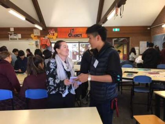 シュバリエ高校2年生の芸術の授業で書道をしました。今回は、2回目の先生役だったので、ずいぶん慣れてきました。はじめに紫高生がデモンストレーションをして、書き順を示した後、それぞれのテーマの中で書きたい単語を選び、シュバリエの生徒が書きました。授業が終わると各自の作品を持って記念撮影。お世話になった先生にはお土産をお渡ししています。