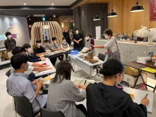 午前の第2回学校説明会に引き続き,午後は中学生2年生を対象に「体験授業」を行いました。 全体会冒頭の岩佐校長の挨拶に引き続き,地蔵中高一貫教育推進部長から西京高校の概要説明がありました。また,フィールドワークについても2年生の代表生徒がわかりやすく説明いたしました。 全体会の後,各教室へ移動し,中学生3~4名のグループが構成され,「○○年後の回転寿司屋をそう…